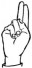 На ћирилици написано ШАЛЕ ЗАРИЋ састоји се из 9 слова [?]. Исписано ћириличном једноручном азбуком за глувонеме: